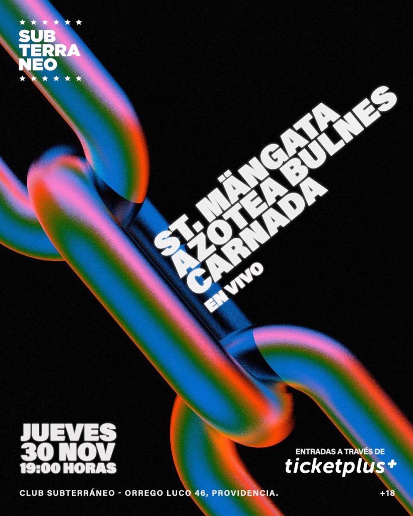 El jueves 30 de noviembre en el mítico Club Subterráneo, ubicado en Providencia, ofrecerán un triple show para despedir el 2023. La cita comienza a las 19:00 hrs. en Orrego Luco 046, Providencia. Las entradas están disponibles en Ticketplus.cl