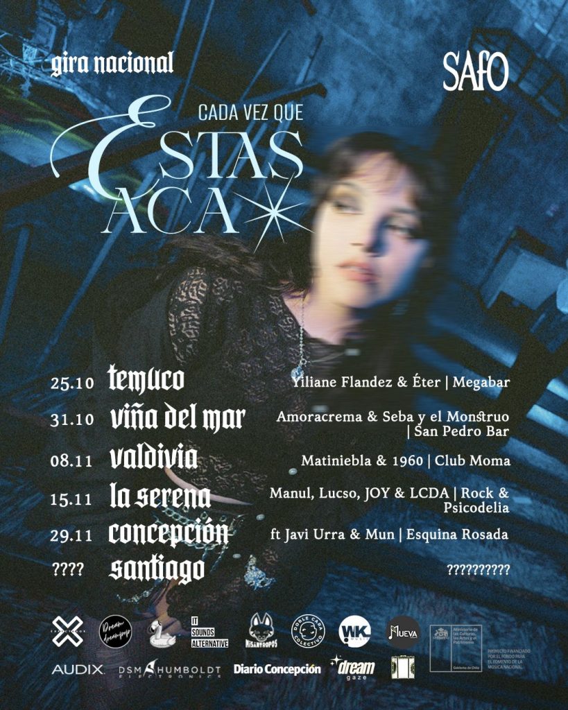 Musicalmente, Cada Vez Que Estás Acá dialoga con referentes como My Bloody Valentine, The Cure, Lana del Rey y Clairo, mostrando un sonido que se mueve entre guitarras atmosféricas, sintetizadores envolventes y letras que capturan la nostalgia de un amor que persiste en la memoria. Con pasos previos por Lollapalooza Chile y teloneando a The Drums, Safo se consolida en la escena alternativa y prepara su gira nacional durante noviembre, donde presentará en vivo este debut.
