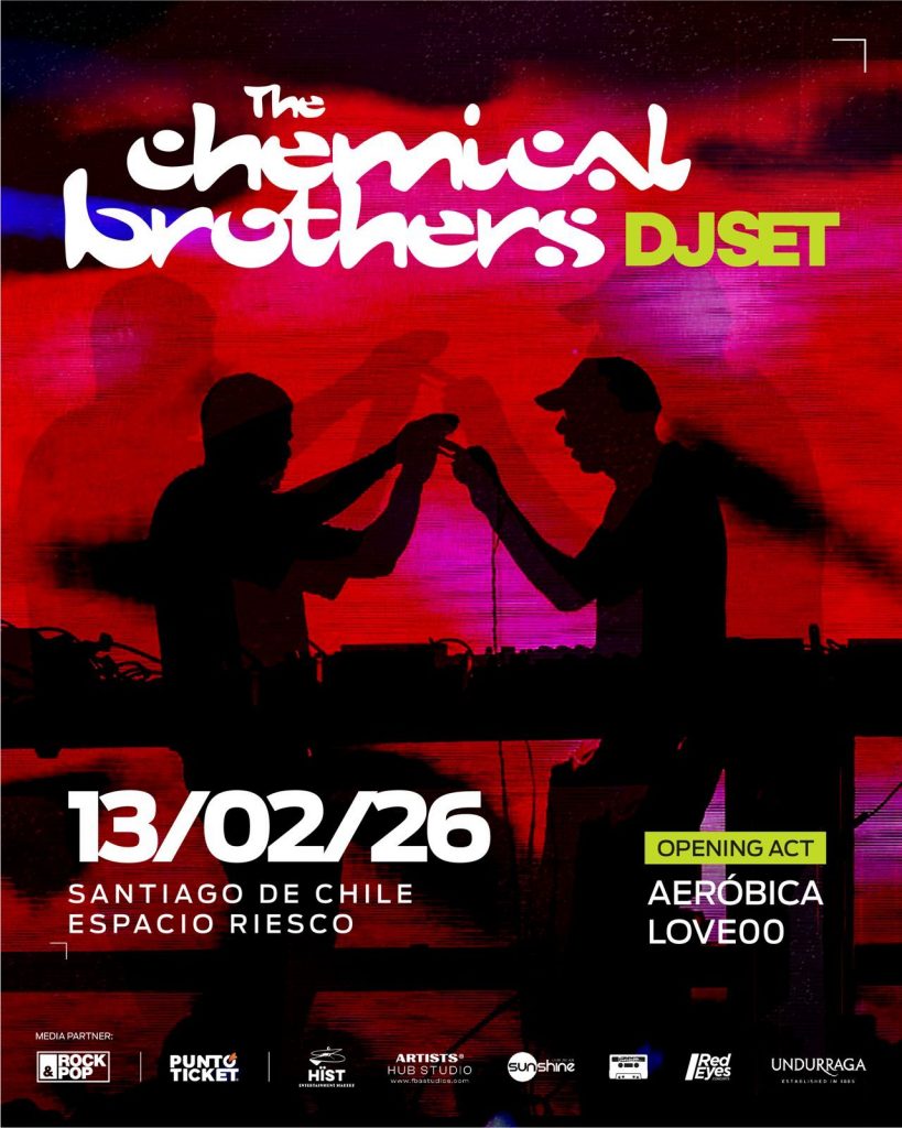 The Chemical Brothers en Chile: AEROBICA y Love 00 abrirán la jornada Viernes 13 de febrero en Espacio Riesco desde las 19.00 horas. En febrero del 2026 el público chileno podrá disfrutar del dúo británico, quienes llegarán con un DJ Set cargado de energía. Entradas a la venta por Puntoticket